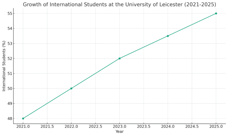 The university has seen a steady increase in international enrollment from 48% in 2021 to 55% in 2025, making it one of the fastest-growing global student communities in the UK.